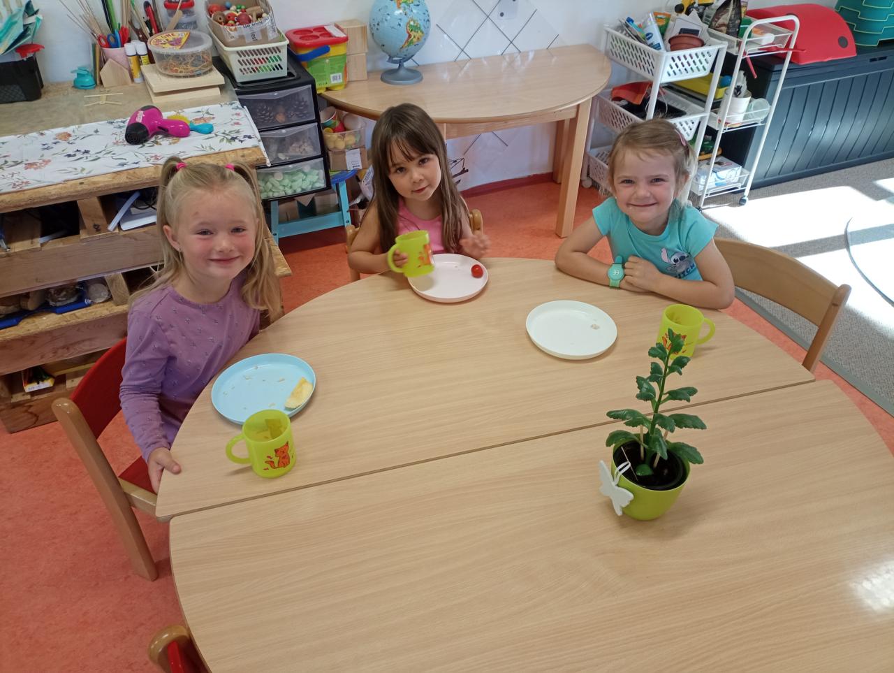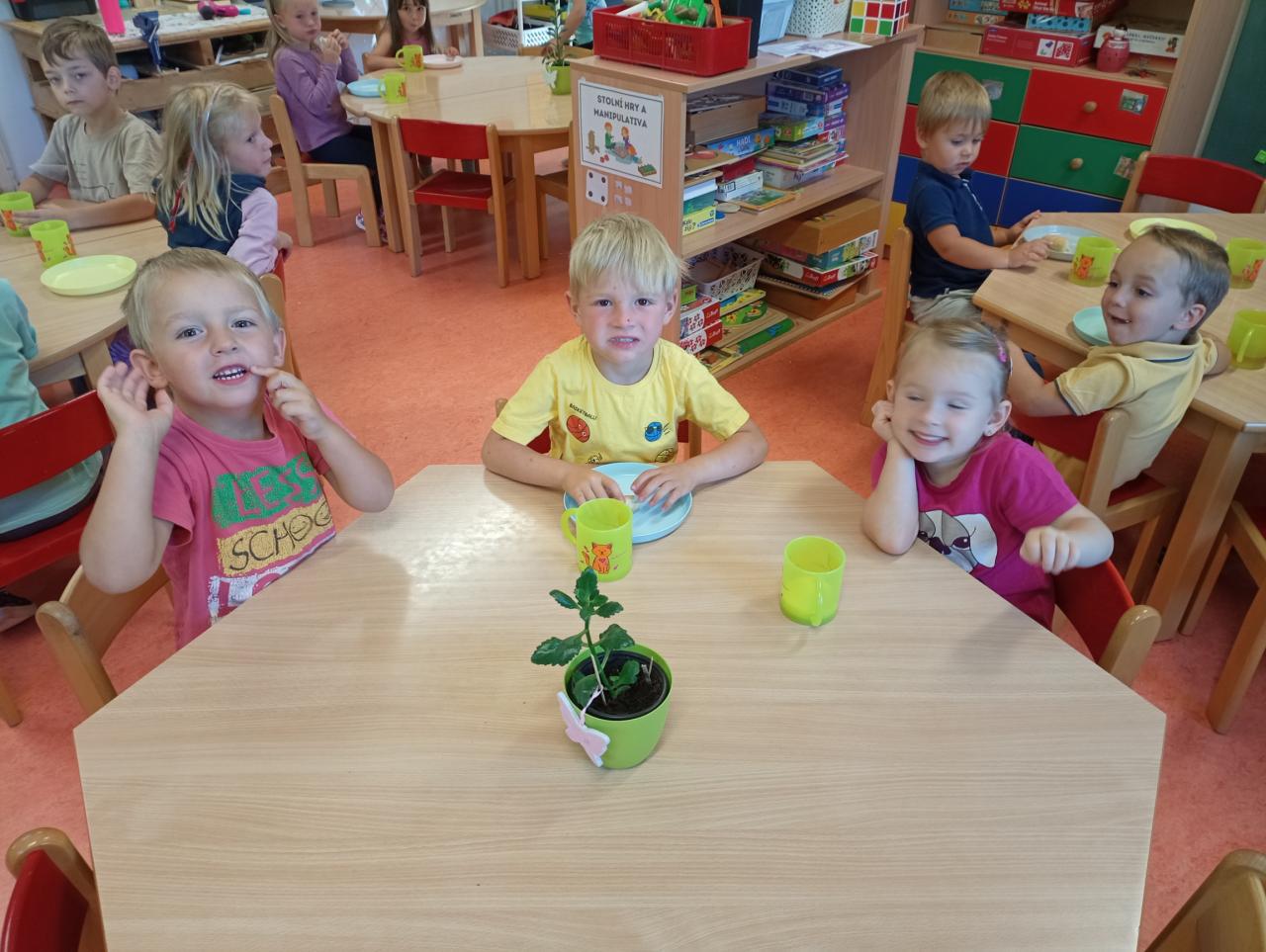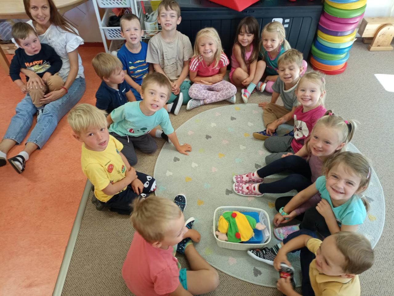 Seznamujeme se s novými kamarády, zaměstnanci školy a budovou. Učíme se svá jména, pravidla.
