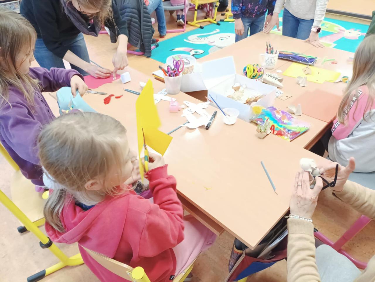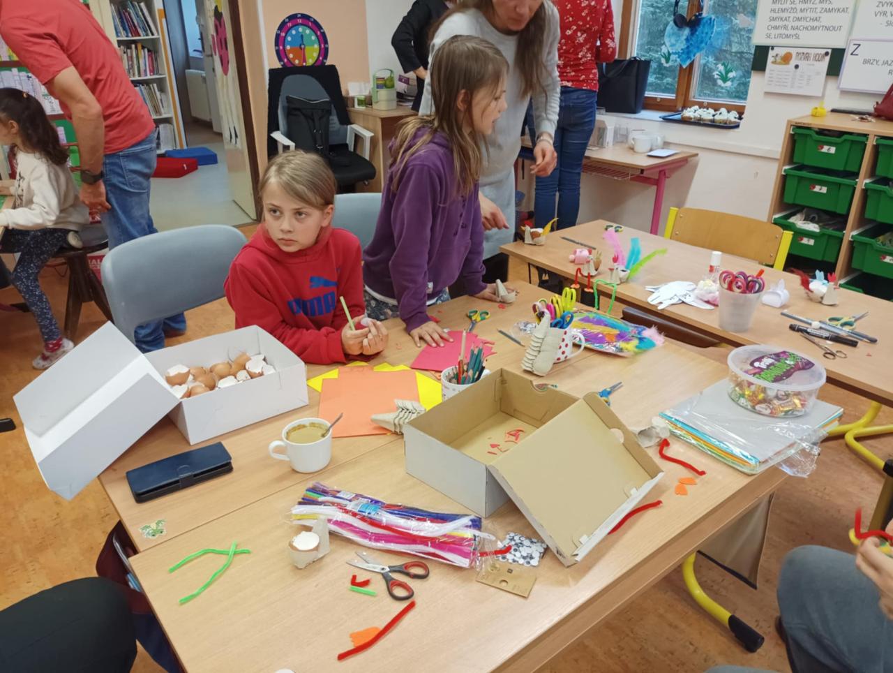 Pár momentek z podařené velikonoční dílny. Tvoření rodičů, babiček, sourozenců i žáků naší školy bylo v příjemné atmosféře s vůní kávy a sladkých dobrot.